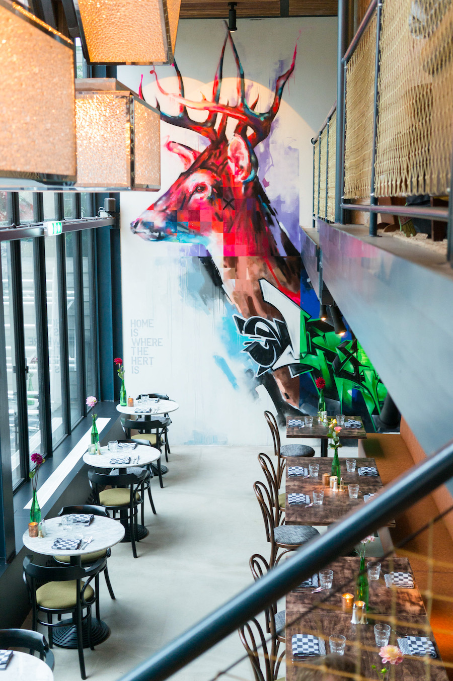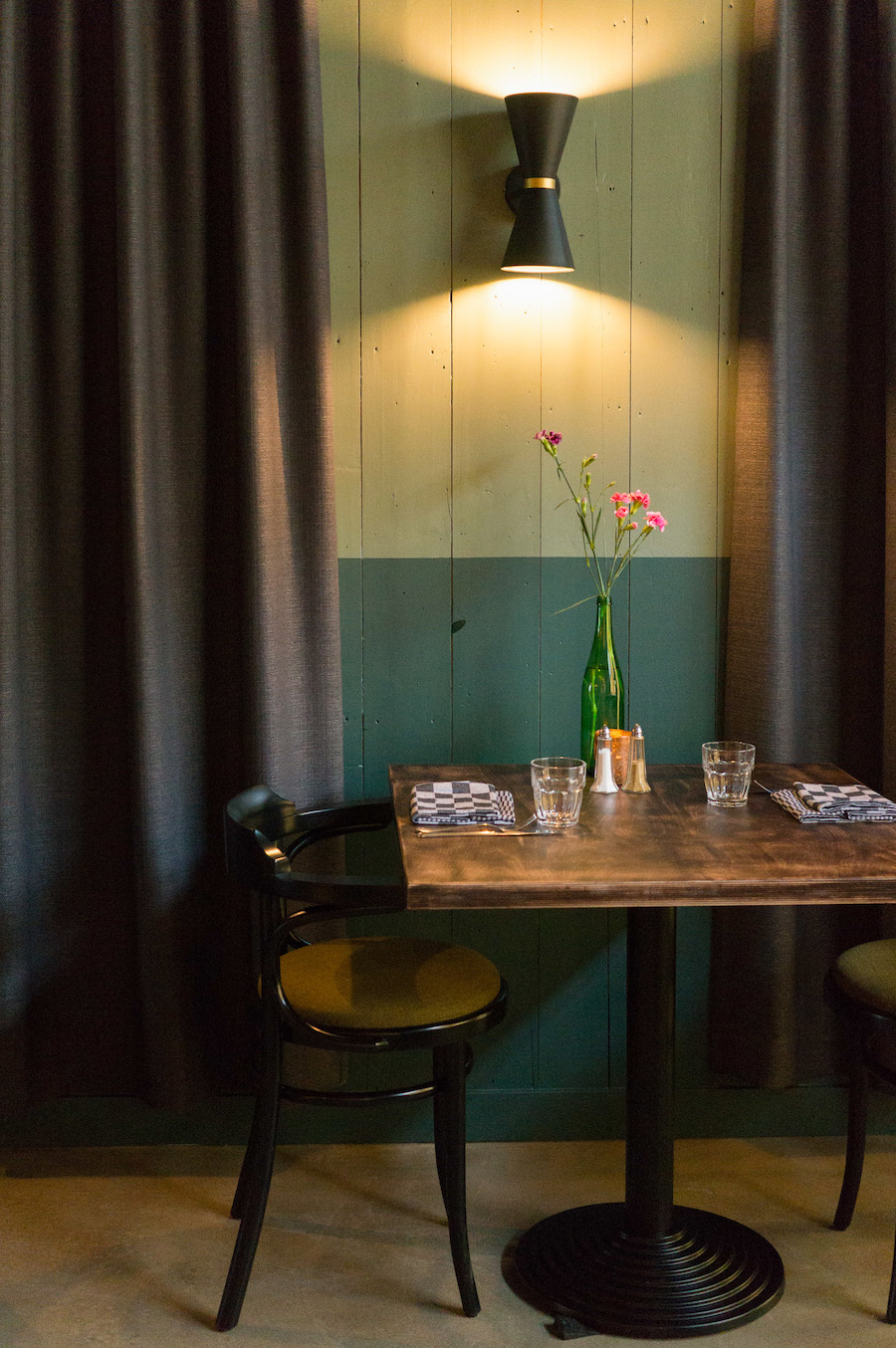 Met Café Cliché wil Sidney een culinaire huiskamer toevoegen aan Amsterdam-Oost. Ze werken zonder reserveringen (behalve bij groepen vanaf 8 personen), omdat dat helemaal past bij de sfeer die ze willen uitstralen. “Dit moet vooral een plek zijn waar je lekker spontaan naartoe gaat”, vertelt Sidney’s vrouw en tevens gastvrouw Geralda ons. Je bent er welkom met je vrienden, je familie en met je kinderen (onder in het restaurant bevindt zich zelfs een aparte kinderhoek).