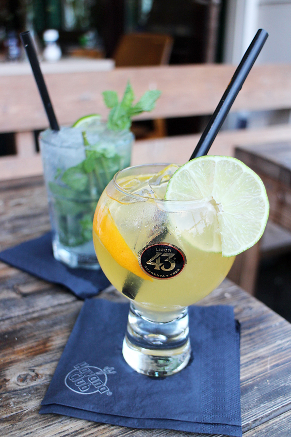 Terwijl de avond vordert, de zon achter de bomen verdwijnt en het gezellige terras steeds voller raakt, besluiten we nog een cocktail te bestellen. Het is per slot van rekening cocktail night (elke woensdag kosten de cocktails slechts €5,-). Net als de burger zijn ook de classic mojito en de Balón 43, een cocktail van Liquor 43, citroensap en bruisend water, zalig!