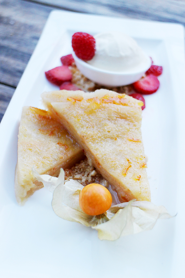 Zelf starten we op aanraden van de manager met een pizza die we delen, met daarop coquilles, Parmaham, rucola, tomaat en kaas (€16,50). Ondanks dat we de voorkeur geven aan een flinterdunne bodem, is deze iets stevigere jongen heerlijk!