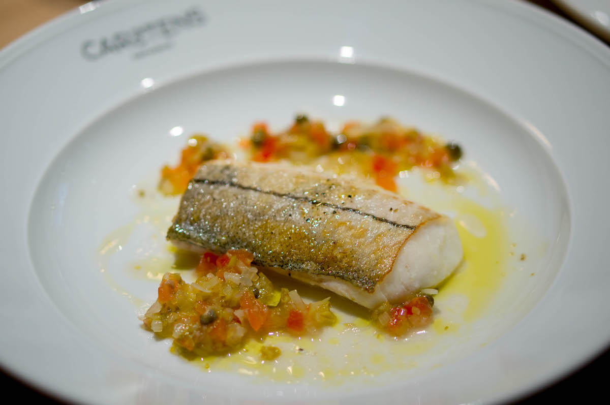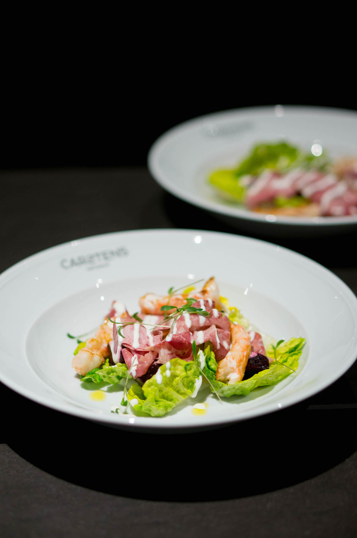 En het gaat maar door met die Hollandse gerechten en ingrediënten, bij Carstens. De garnalencocktail – met natuurlijk Hollandse garnalen, die ook nog eens in Nederland zijn gepeld (en niet opgestuurd naar Marokko, zoals meestal gebeurt) – bestaat uit een krop sla, afgetopt met garnaaltjes, pittige cocktailsaus en croutons. De carpaccio van gele biet wordt opgediend op geitenkwark en afgemaakt met knapperige zonnebloempitjes.