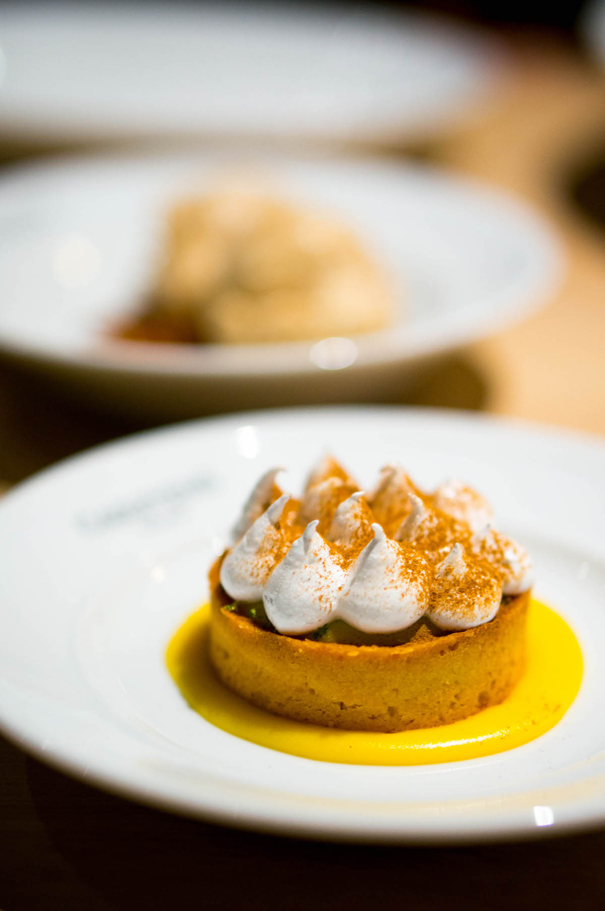 Er is rauwe, gehakte biefstuk met zure bom en pijpjeskruid. En misschien wel ons favoriete voorgerecht – naast die boerenkool dan – van kalfstong met langoustines, gepofte biet en zure room. De kalfstong bestaat uit prachtig zachte, roze plakjes vlees, de langoustines zijn beeldschoon en hebben een bite. Verrassend is ook het vleugje limoenblad dat we terugproeven in dit gerecht – en trouwens ook bij de gele biet.