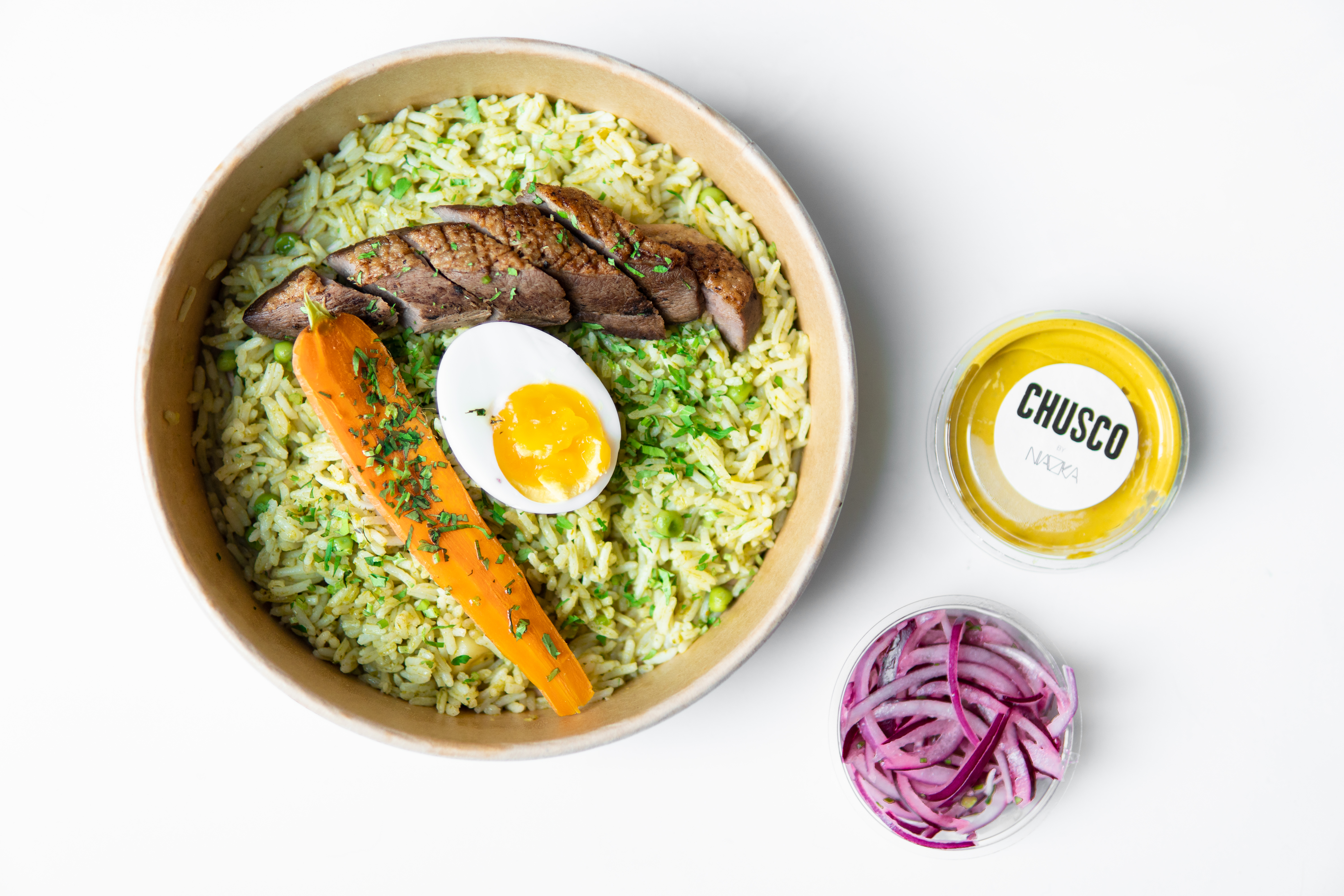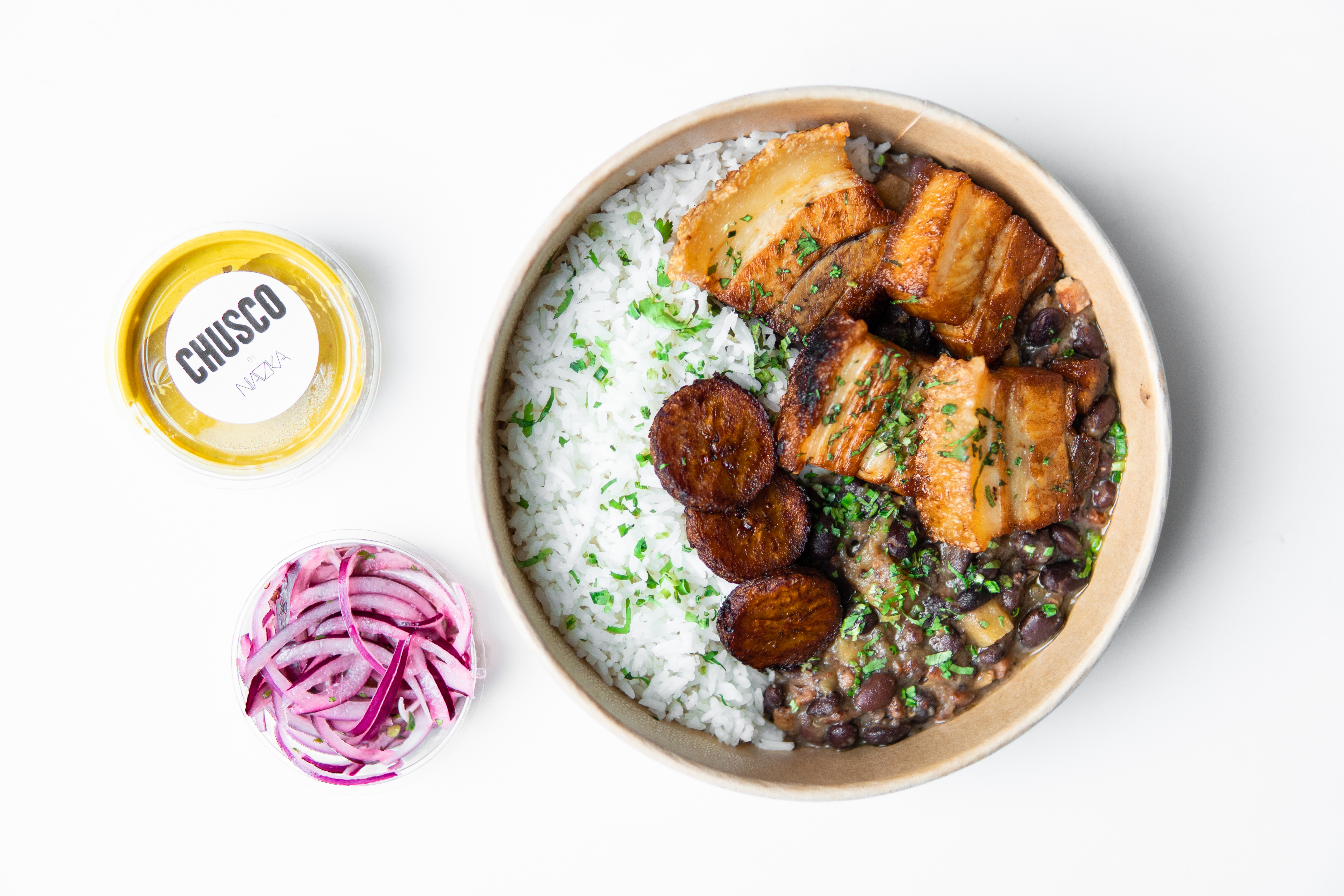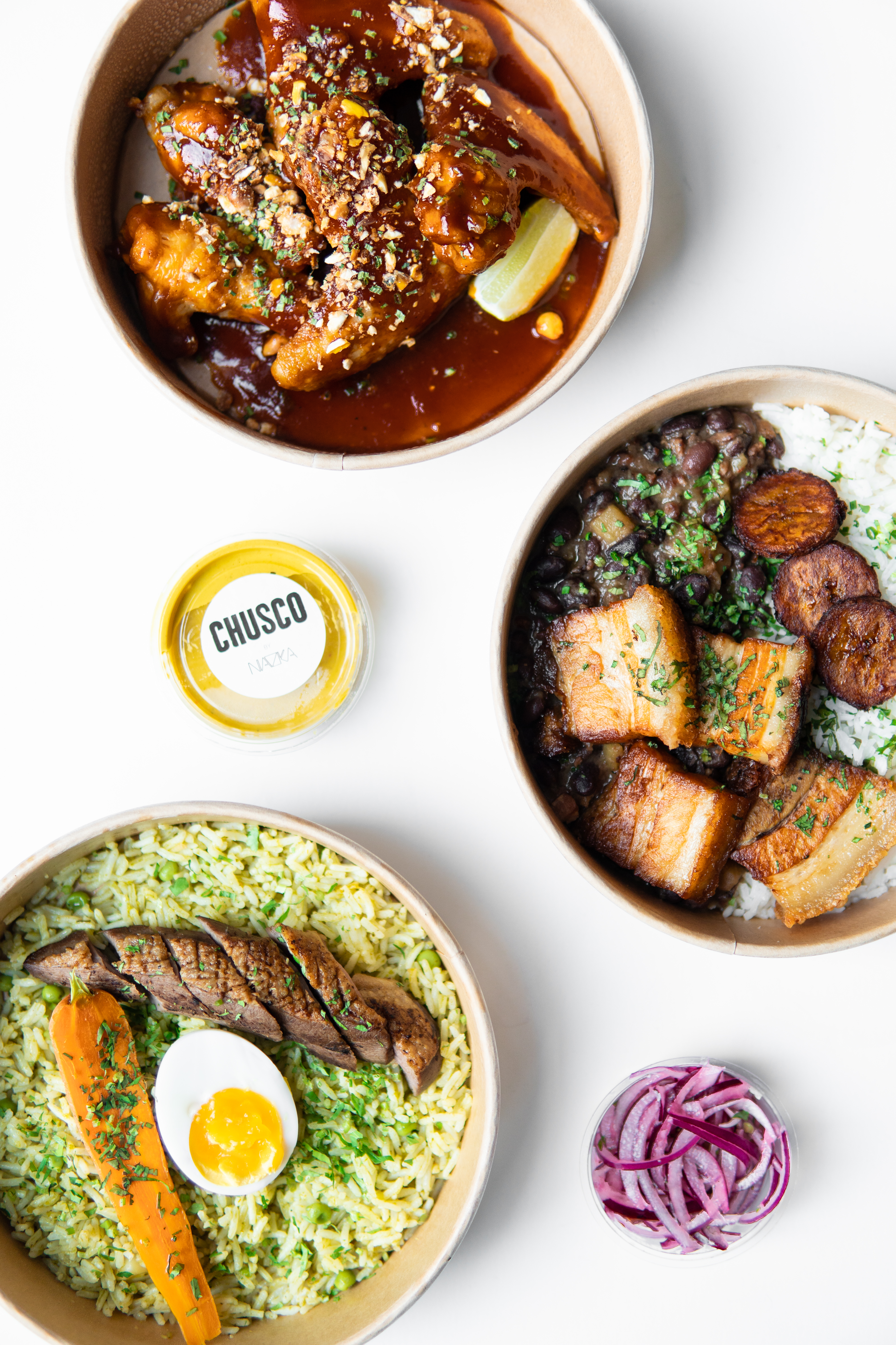 Kijk nou toch eens wat een kleurrijke, vrolijke afhaalbordjes! Daarvoor zit je doorgaans ook wel goed bij de Peruaanse keuken, zoals die bij CHUSCO in Amsterdam wordt geserveerd. CHUSCO is het comfort food-concept van NAZKA, dat toffe Peruaanse fine dining restaurant dat vorige zomer opende in Amsterdam. Culy proefde de afhaalmaaltijden van CHUSCO en ontdekte dat je geluk kunt vinden in Aji panca barbequesaus.