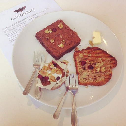 Bij Cottoncake wordt alleen gewerkt met bijzondere en het liefst biologische, duurzame producten. De koffie wordt gemaakt met verse, lokaal gebrande koffiebonen, de thee is geselecteerd door een theesommelier en het brood komt van de biologische bakker BROOD.Je kunt de hele dag door bestellen van zowel de ontbijt- als de lunchkaart en bijna alle taartjes en cakes zijn glutenvrij. En alles is even lekker! De sfeer die hangt bij Cottoncake valt het best te omschrijven als creatief, internationaal en heerlijk relaxt.