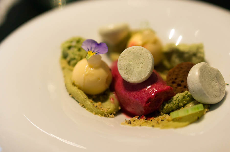 Daarbij het meest fantastische bosvruchten-viooltjesijs. Het sorbetijs is zó lekker fris, vol en tangy, dat we ons de smaak ervan de rest van de avond willen blijven herinneren.