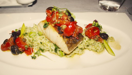De kabeljauwfilet was perfect; het vlees nog mooi glimmend en precies goed gebakken. De kabeljauwfilet lag op een kruidenrisotto – die een tikje zout was – en daarbij een antiboise (tomaat, knoflook, kappertjes en zwarte olijven). Alles geserveerd op hete borden (fijn) en met een glas boterige, roomgele chardonnay van hetzelfde Zuid Afrikaanse wijnhuis. Afzien allemaal, dat begrijp je.