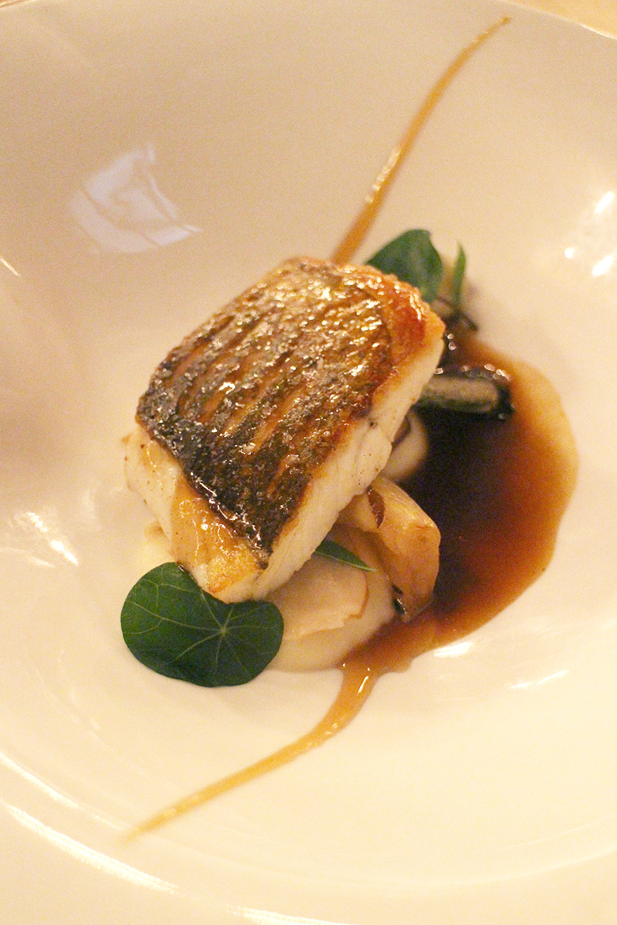 Dit geldt ook voor de op dennennaalden geroosterde zeebaars met Thaise kruiden en een krachtige jus: het geheel is wederom heerlijk, maar we snakken naar nog zo’n fantastisch gerecht als de Spaanse klassieker in een nu al favoriet Lute-jasje.
