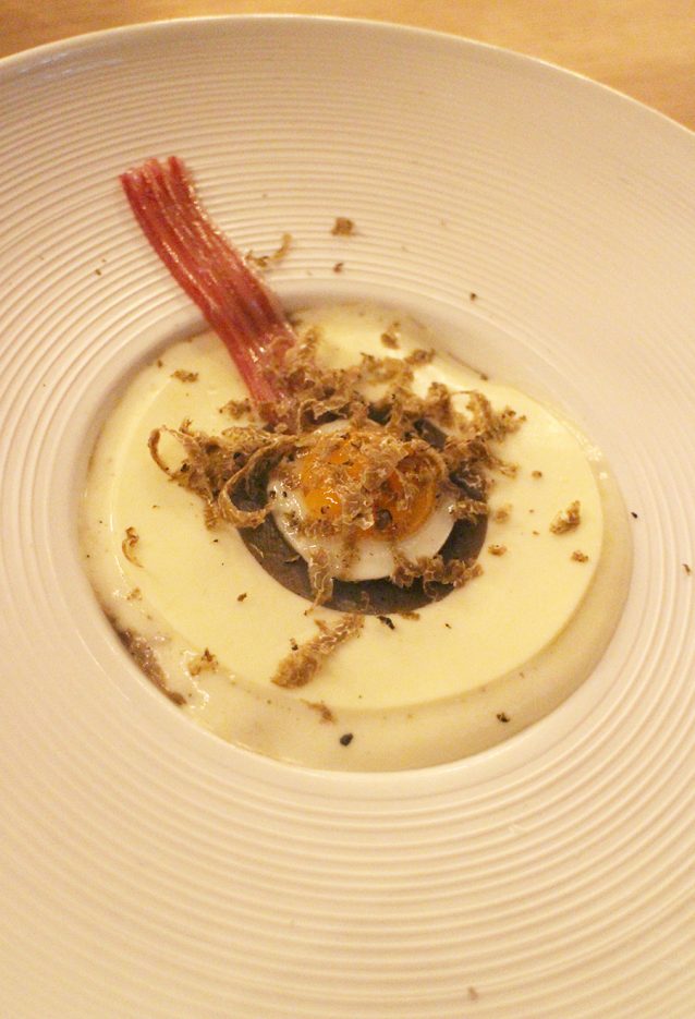 De risotto waar ons oog al direct op was gevallen wordt geserveerd met een zijdezacht Parmezaan-schuim, marbré van lardo en bresaola, en een lading verse truffel, en is nog beter dan we hadden durven dromen.