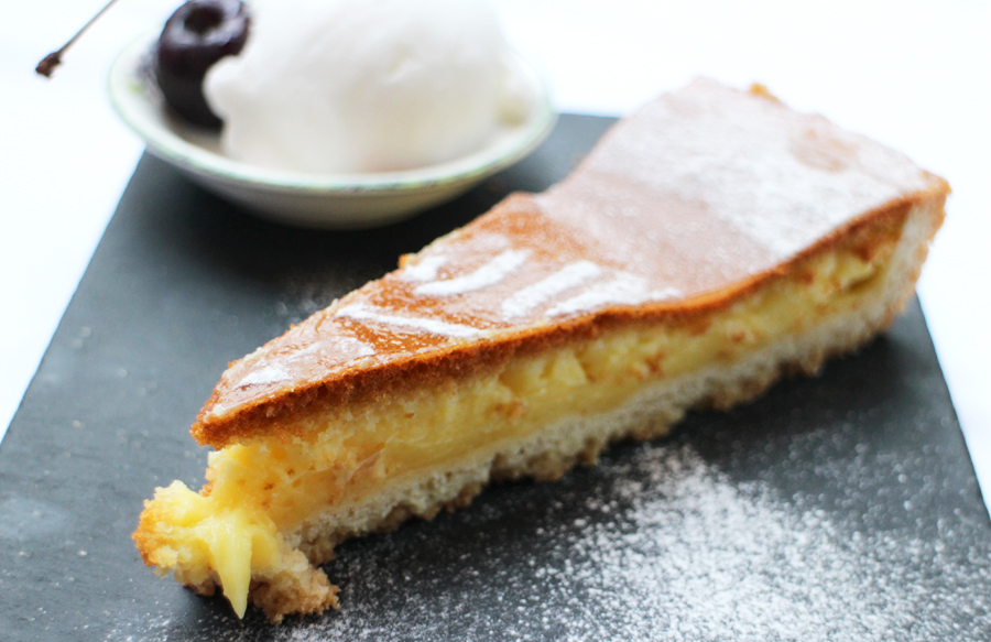 Toe sluiten we af met een stukje citroentaart. Geen standaard citroentaart met lemon curd, maar meer als een zachte vlaai met citroen-custardvulling, zoals je ze wel vaker in Italië tegenkomt (€7,50). Erbij komt een bolletje heerlijk fris citroenijs.