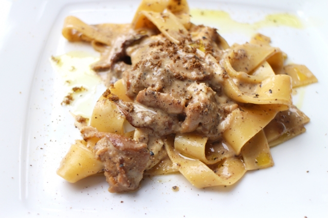 Over de pasta kunnen we kort zijn: die is geweldig! De portie is wel wat aan de kleine kant, maar verder is de saus goddelijk van smaak, het eekhoorntjesbrood niet te lang gebakken en de truffel…Tja, wat kunnen we daar nog over zeggen?