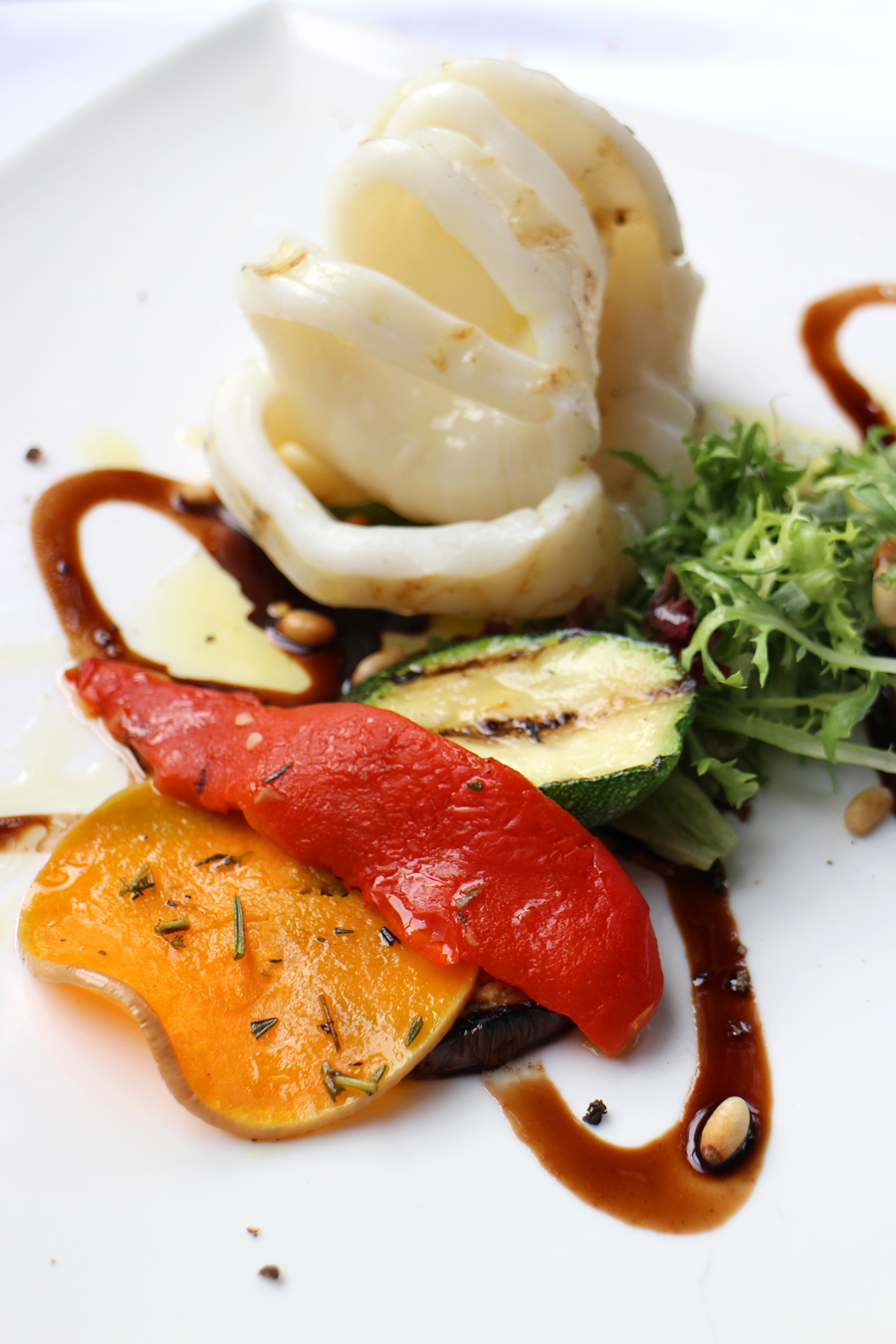 De burrata stelt niet teleur: zacht, romig en nog beter in combinatie met de tomaatjes en balsamico. De inktvis is groot, maar bovenal zacht, smaakvol en heerlijk met de groenten erbij. Het enige jammere is dat bij beide gerechten een hoop onnodige frisee sla wordt geserveerd (waarom niet een lekkere pluk rucola?).