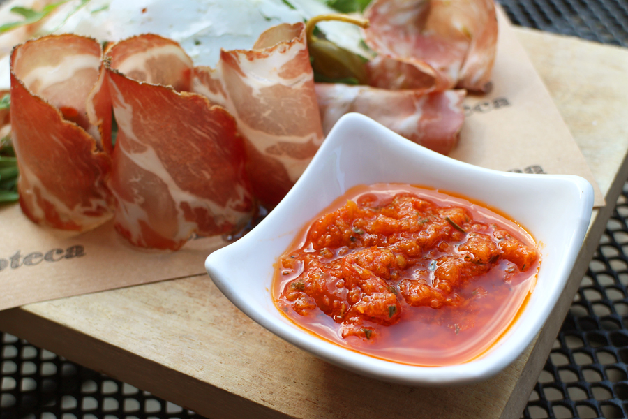 En de zaak heet niet voor niets Enoteca (de oorspronkelijke benaming voor een Italiaanse wijnbar): de wijnen staan centraal. Zo is er keuze uit meer dan 20 wijnen per glas.