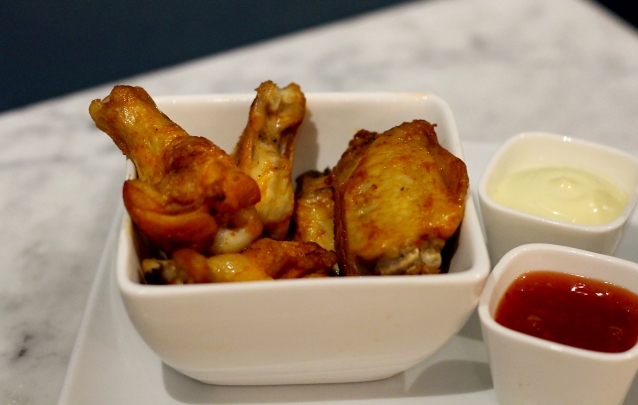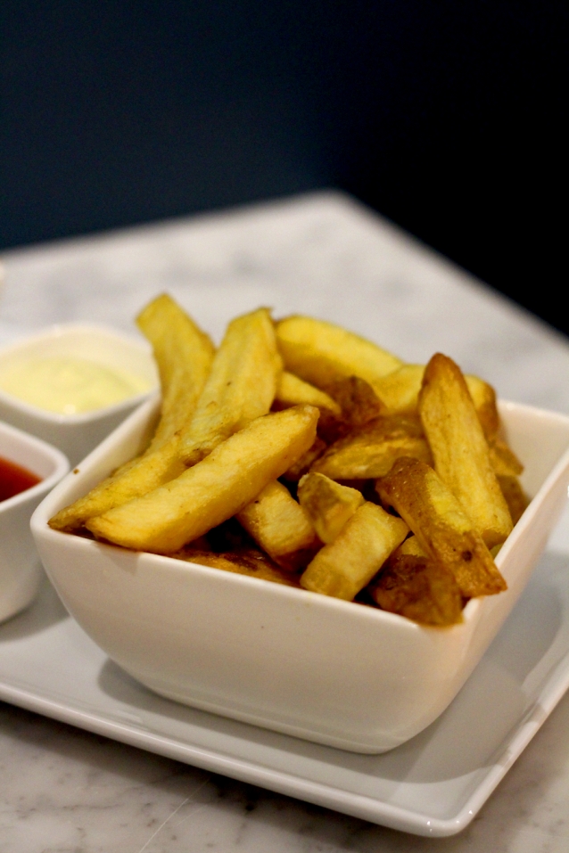 Daarnaast zijn er verschillende bijgerechten: chicken wings (in spicy en niet-spicy), handgesneden frietjes met het lekkere schilletje er nog aan, een maiskolf en een groene salade.