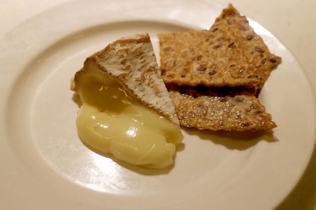 Uit de kaaskist in het begin van het restaurant (absoluut een kijkje waard!) krijgen we een stukje coulommiers: een prachtige witte kaas van koemelk, die veel weg heeft van brie maar een stuk sterker smaakt en zachter van structuur is.
