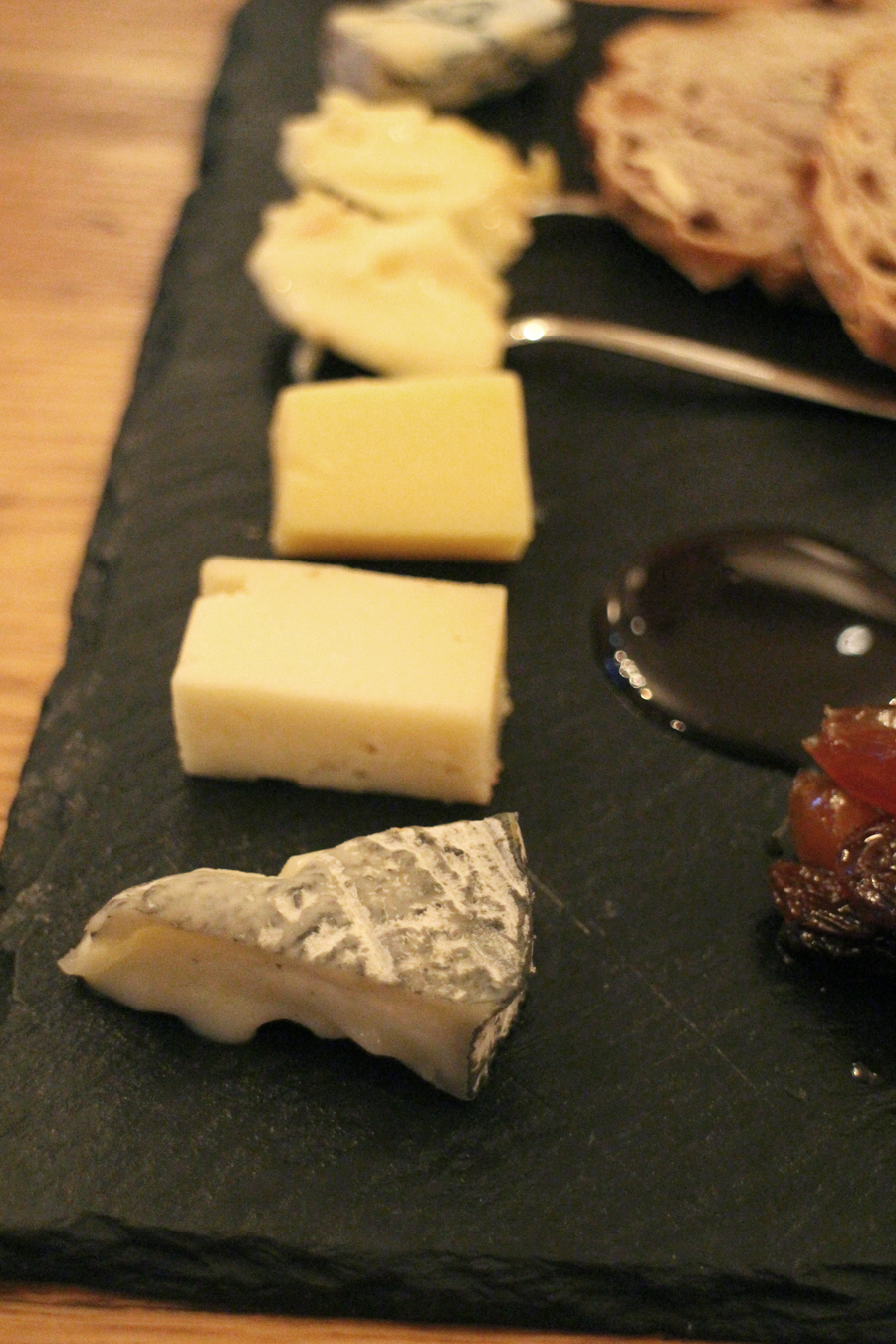 Dan komt het kaasplankje waar we ons al de hele avond op verheugen. Gelukkig stelt de combinatie ons alles behalve teleur (geitenkaas in as, een jonge Taleggio, Gruyère, époisses en een blauwschimmel) en smaken de kazen (zeker met de gekonfijte zilveruitjes, appelstroop en notenbrood) bijzonder goed.