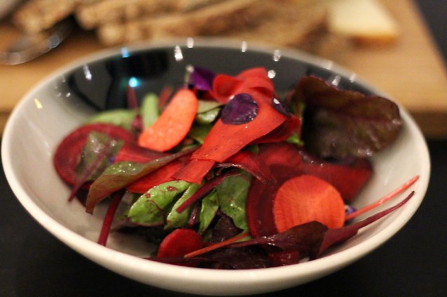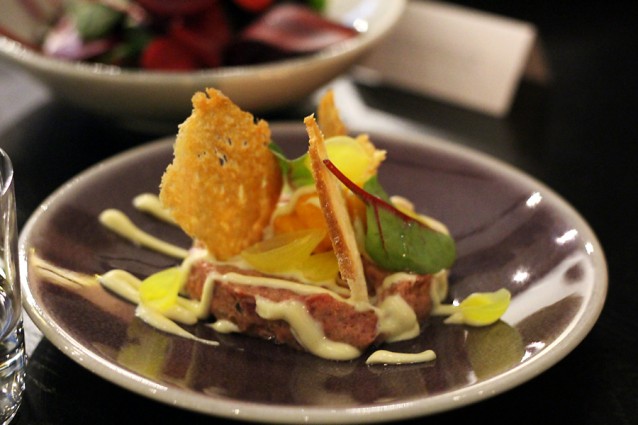 Het voorgerecht bestond uit kleurrijke salades, een goddelijke steak tartaar en een pizza met gerookte paling. Het hoofdgerecht was een combinatie van vegetarische, vlees- en visgerechtjes. Het toetje hoefden we (hoera!) niet te delen en was een oud-Hollandse vlaflip. Heerlijk.