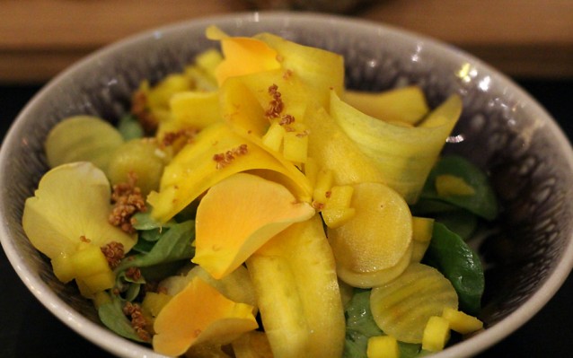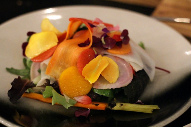 De gerechten zijn een goede afwisseling van frisse en volle smaken en omdat je van alles wat neemt zit je aan het einde van de avond niet heel vol, maar precies goed.