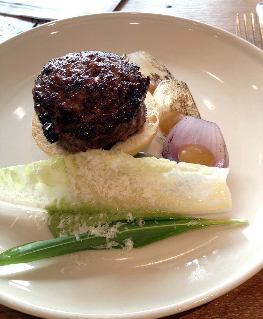 We sluiten af met de wagyuburger met gegrilde uien. Dat de burger is gemaakt van gemasseerd koeienvlees valt niet te proeven, en de rest van het gerecht is ook niet top. Jammer, want zonder dit gerechtje was onze lunch perfect geweest.