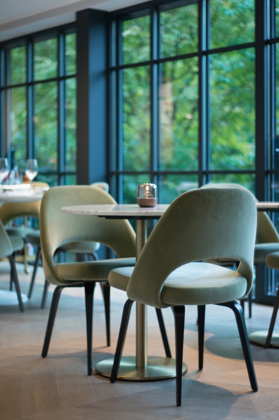 De ruimte voelt ook meteen gezellig en knus, maar dan op een stijlvolle manier. Laagdrempelig, maar met de gastvrijheid van een hotel. En de met fluweel beklede bankjes en stoelen willen we eigenlijk meteen kapen voor thuis.