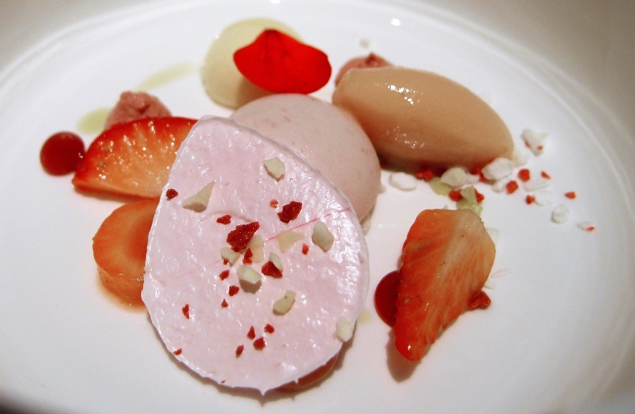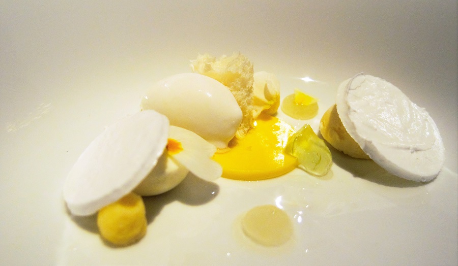 De chefs werken wel heel nauw met elkaar samen. Dat proef je ook terug in de desserts. De eerste: diverse bereidingen van aardbei met cumbava en guave. En het tweede ’toetje’: citroen, aloë vera en karnemelk.