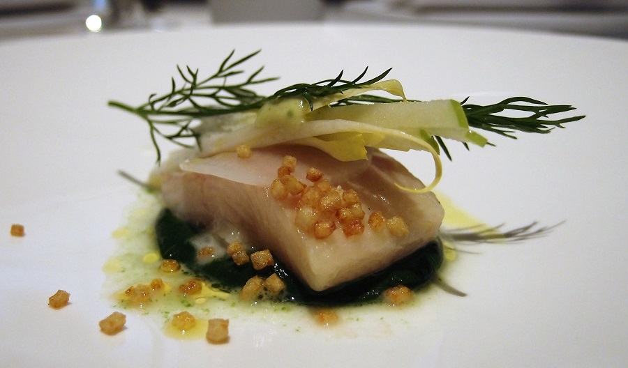 De rest van het menu (zeven gangen!) wordt deze trend doorgezet. Denk aan langoustine met wortel, specerijen en limoen. Of forel met krokante aardappel, groene mosterd en jonge knoflook.