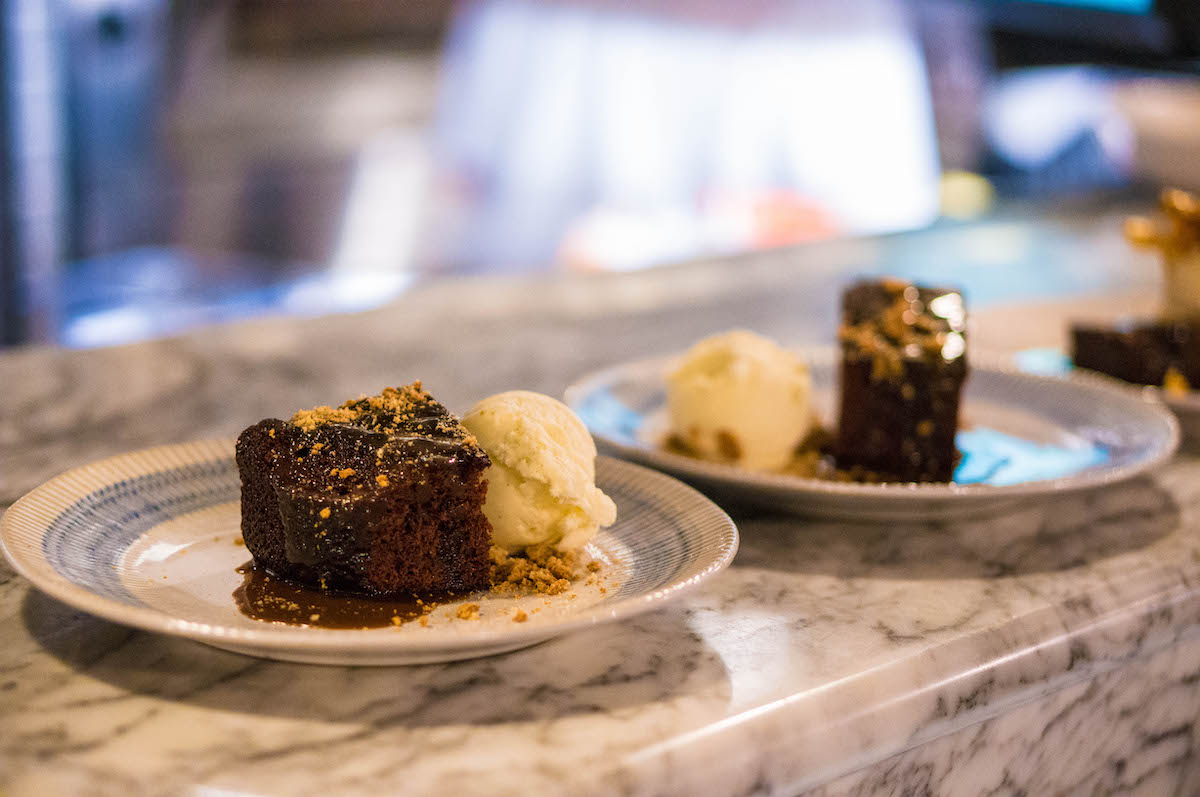 Wij hebben dan ook écht geen plek meer over voor een toetje en maken het onszelf makkelijk met een Sgroppino. Die bestaat uit Ketel One vodka, Prosecco en citroensorbe). Maar je zou ook voor de kersen pavlova, sticky toffee pudding of de epic chocolate brownie (met popcorn!) kunnen gaan. Het is tenslotte maar één keer per jaar kerst…