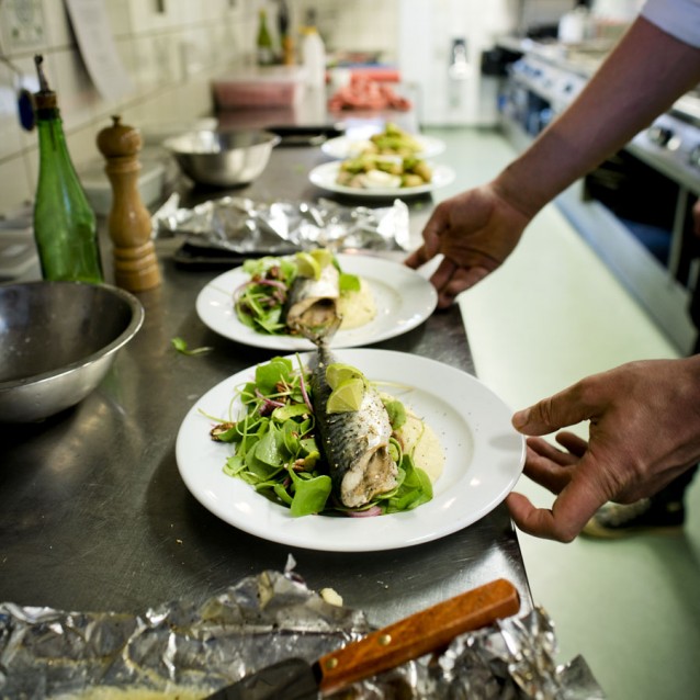 ’s Avonds heb je meestal de keuze uit 5 voor-, 6 hoofd- en een aantal nagerechten. Denk bijvoorbeeld aan ravioli gevuld met krab, huisgerookte kip of een hartig taartje van prei en taleggio. Of wat dacht je van een prachtige entrecote van de plancha, een auberginespies met kikkererwten-friet en gekruide hangop en zoete-aardappelfriet met crème fraîche?