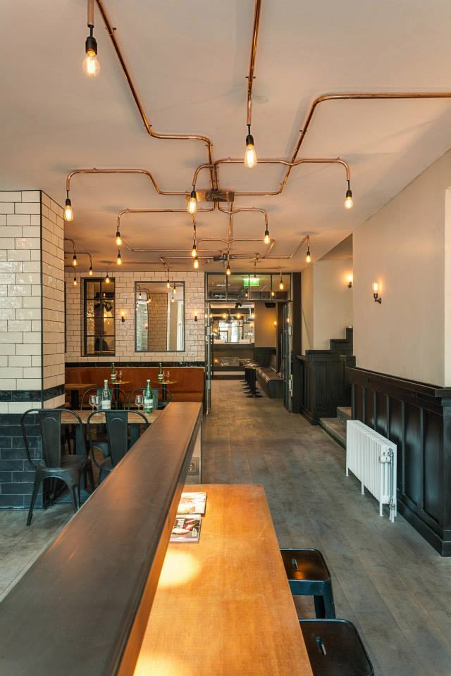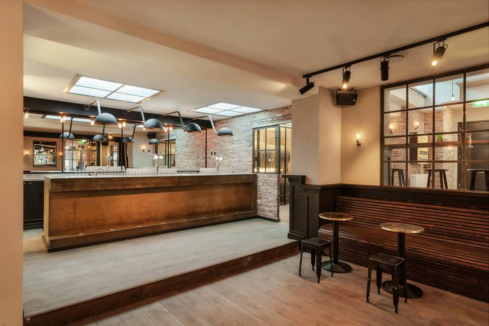Het interieur is superhip. Het heeft de stijl van een Frans café uit de jaren ’90 met New Yorkse bakstenen muren en een vintage Amsterdamse vloer uit de achttiende eeuw. Het heeft een intieme setting in een industriële omgeving.