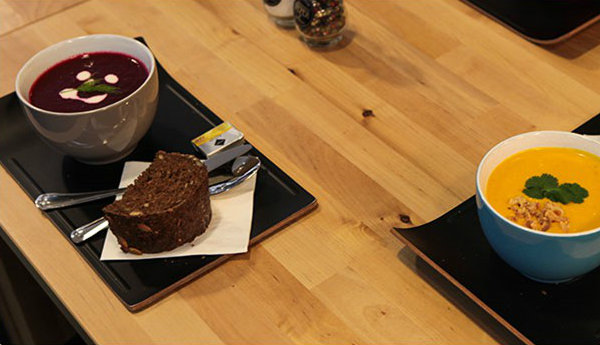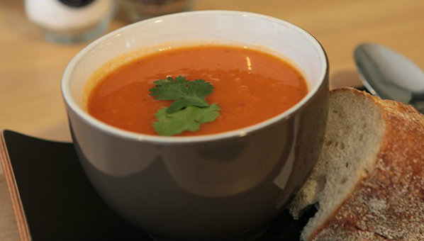 Iedere dag is er keuze uit vier verschillende soepen, waarvan één altijd een traditionele Hollandse soep is, en één exotisch exemplaar. Fijn: alle soepen worden geserveerd met een lekker stuk brood.