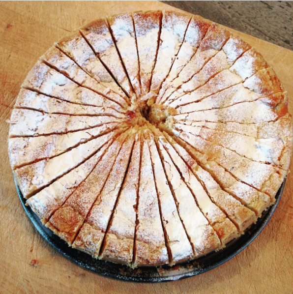 Na het hoofdgerecht wordt het dessert inclusief koffie en limoncello geserveerd. Koffie in de grootste percolator die we ooit zagen én een fles limoncello, uiteraard weer om te delen. Als dessert boterkoek met rozemarijn en zeezout waar we sindsdien nog elke dag aan denken.