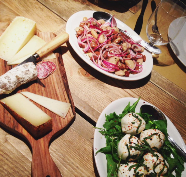 Vooraf aten wij harde kazen, gedroogde worst, buffelmozzarella en een verrukkelijke bonensalade zoals wij die nog nooit buiten Italië hebben gegeten.
