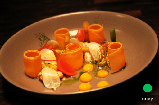 Maar eigenlijk moet je gewoon de Chef’s Choice doen; een uitgebreide proeverij, samengesteld door de chef, waarin alle aspecten van de menukaart aan bod komen. De ideale manier om de Envy ervaring te beleven!