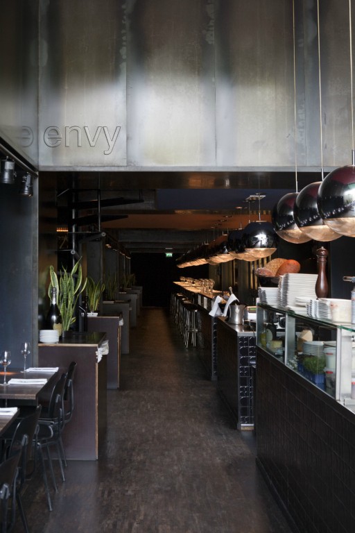 Envy delicacies is een ontmoetingsplaats waarin de verse producten en goede wijnen centraal staan. Er is dan ook gekozen voor een combinatie van een strakke, maar toch huiskamerachtige sfeer. Bij binnenkomst valt meteen de grote open keuken op, waardoor gasten direct binnenvallen in de wereld van het bereiden van producten. Eén van de wanden bestaat uit 26 koelkasten. Deze zijn op ooghoogte geplaatst en gevuld met wijnen, kazen, worsten, oesters, jammen, chutneys etc. Dit alles zorgt ervoor dat er bij de gasten een onmiddellijke interesse in de producten opgewekt wordt en ‘zien doet eten’.