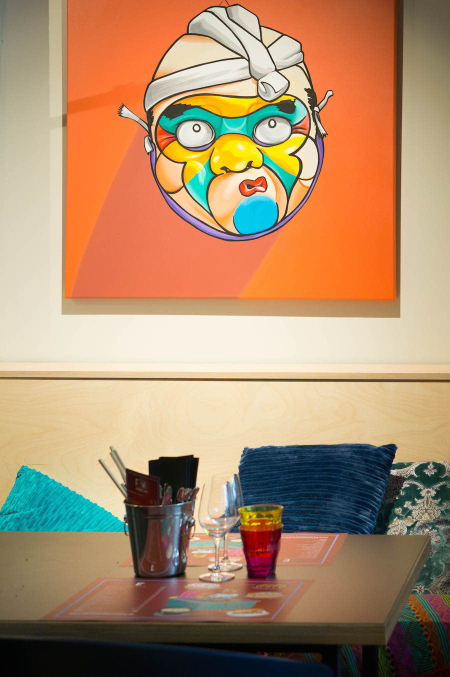Ook bijzonder: FG Okonomiyaki Bar maakt deel uit van de winkel Denoism. Je komt binnen via de lunchroom en loopt zo door naar de kledingzaak. De verbindende factor is dat Denoism sterk leunt op Japans vakmanschap. Je vindt er bijvoorbeeld Japanse denim en kimono’s.