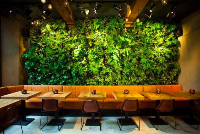 Niet alleen het eten, ook het interieur is om over naar huis te schrijven. Waar de tafels vrij simpel zijn gehouden, zijn sommige muren bedekt met klimop en andere planten. Weer andere muren zijn van puur baksteen wat voor een industriële, maar sfeervolle ambiance zorgt.