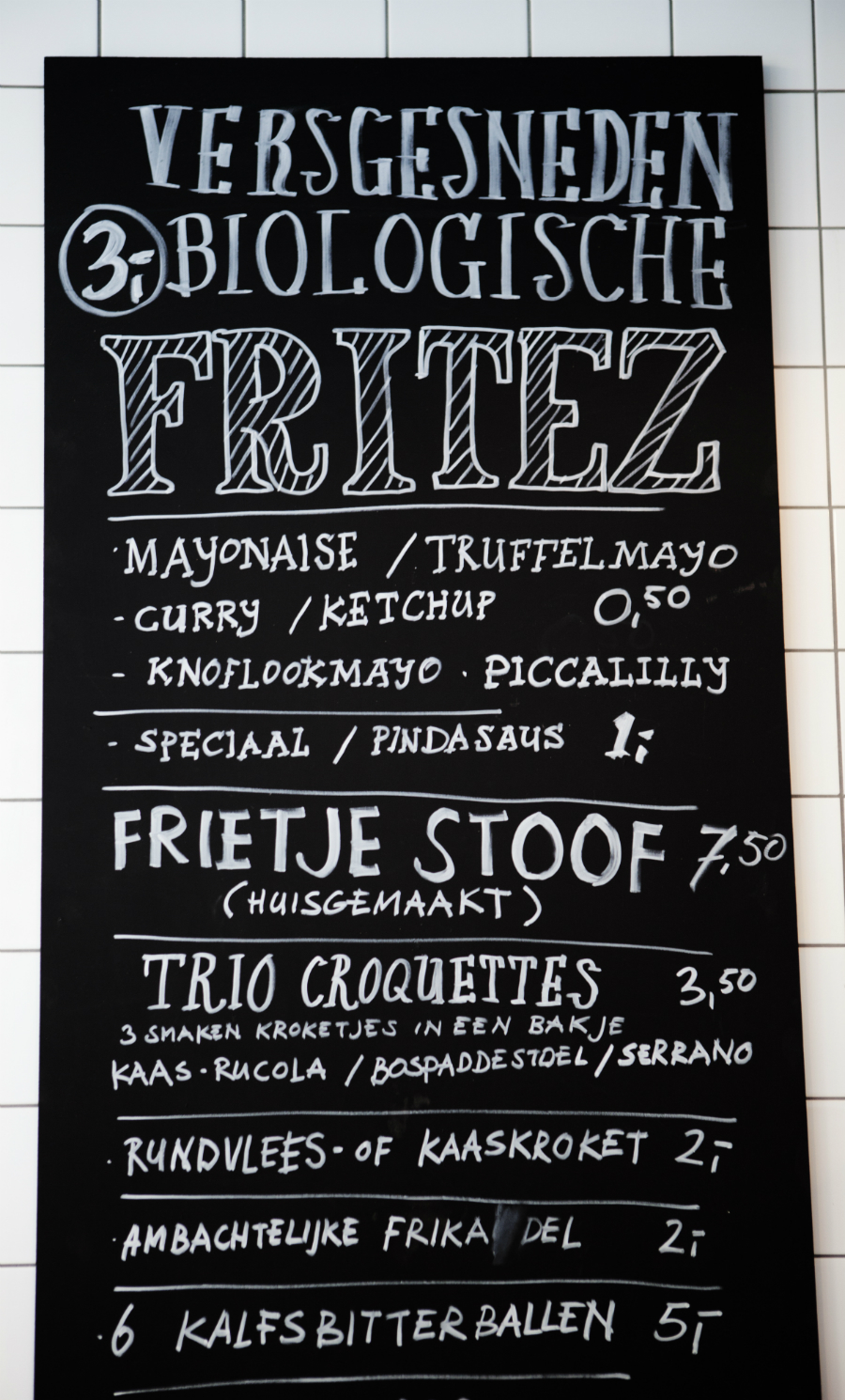 Bij Fritèz verkopen ze – hoe kan het anders? – frietjes! Handgesneden en van verse aardappelen. Je bestelt er een portie friet met mayonaise (truffel, knoflook of naturel) of één van de andere sauzen.