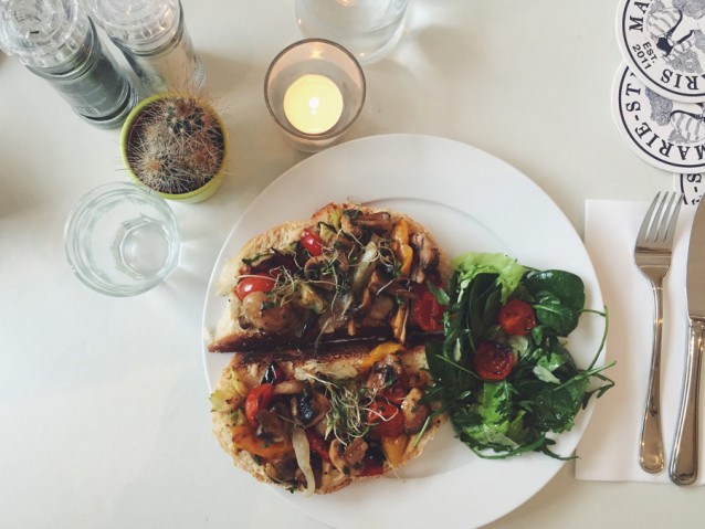 Maar ook de klassieke American pancakes met vers fruit en maple syrup, een eitje op brood (fried, scrambled of een omelet), salade met pompoen en belegde broodjes met onder andere avocado, gegrilde groenten en een BLTC (BLT met kip) mogen niet ontbreken.