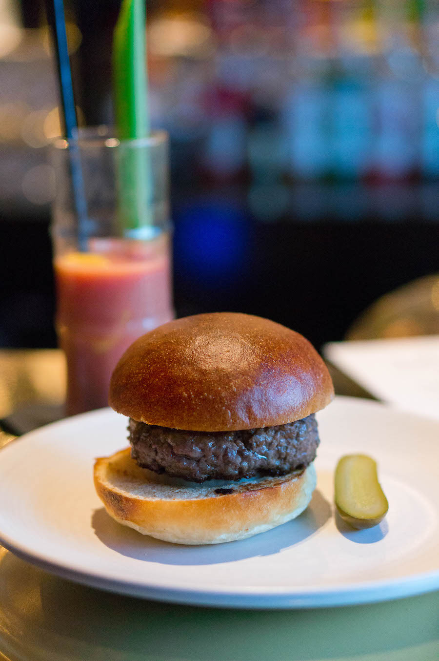 Ook een perfecte burger moet zwemmen: we zijn hier in een bar tenslotte. The Confidential Burger is perfect in balans met de Bloody Mary van Freddy’s Bar. Die bevat naast Ketel One vodka en tomatensap o.a. gerookte paprika, Griekse yoghurt en basilicum. Dat maakt ‘m lekker fris.
