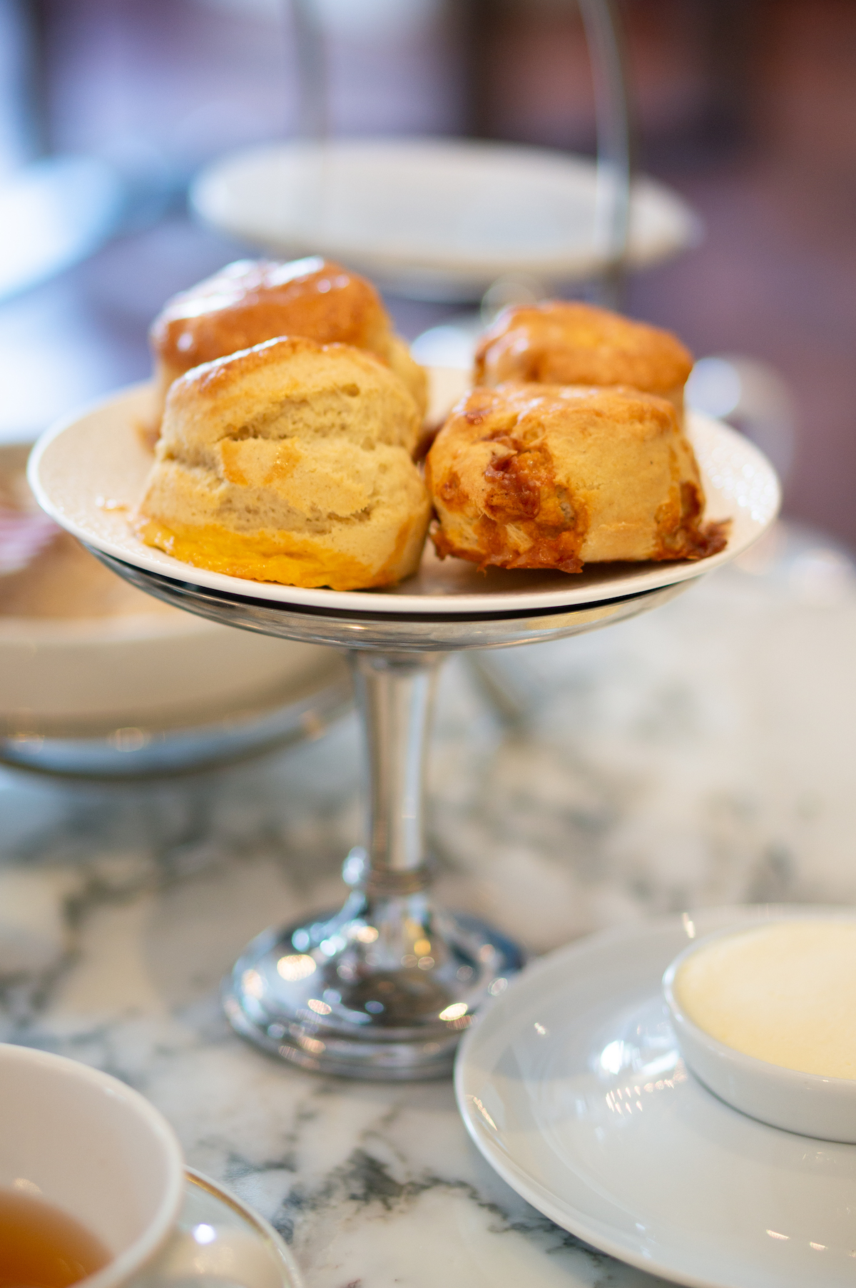 En wat er bij geen enkele high tea mag missen, zijn natuurlijk scones. Zo ook bij de Afternoon Tea ontbreken ze niet. En wat voor scones! We krijgen twee kakelverse scones, één met echte vanille en één met een subtiele hint van karamel-zeezout. En dat mag wat ons betreft vaker in een scone zitten.