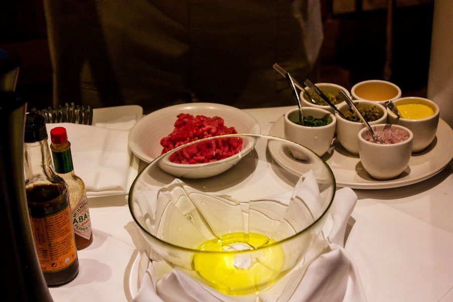 Extra luxe voelt de tafelbereiding die bij sommige gerechten wordt gedaan. Zo wordt de uienbouillon bijvoorbeeld aan tafel ingeschonken. Bij de steak tartare (nog zo’n andere klassieker) gaan ze nog een stap verder: die wordt geheel aan tafel bereid. Super leuk, want dan zie je precies wat voor ingrediënten gebruikt worden én heb je invloed op het proces.