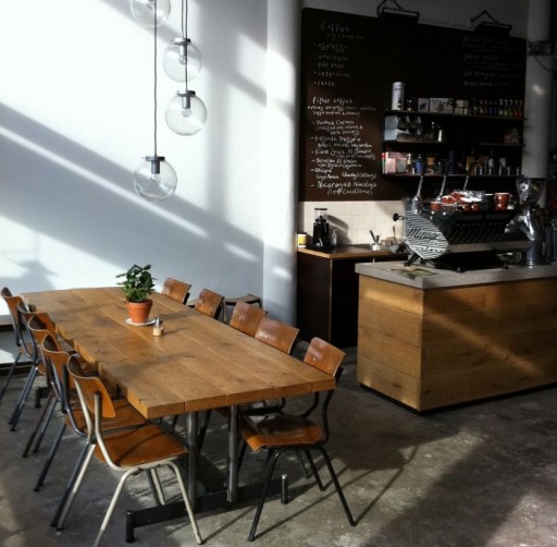Met de onbewerkte betonnen vloer, grote bar en lange leestafel is het een genot om hier je cappuccino te drinken. Probeer ook een keer de filterkoffie of maak een keuze uit de theeselectie. En vergeet dan niet om het het brood te proeven. Delicious!