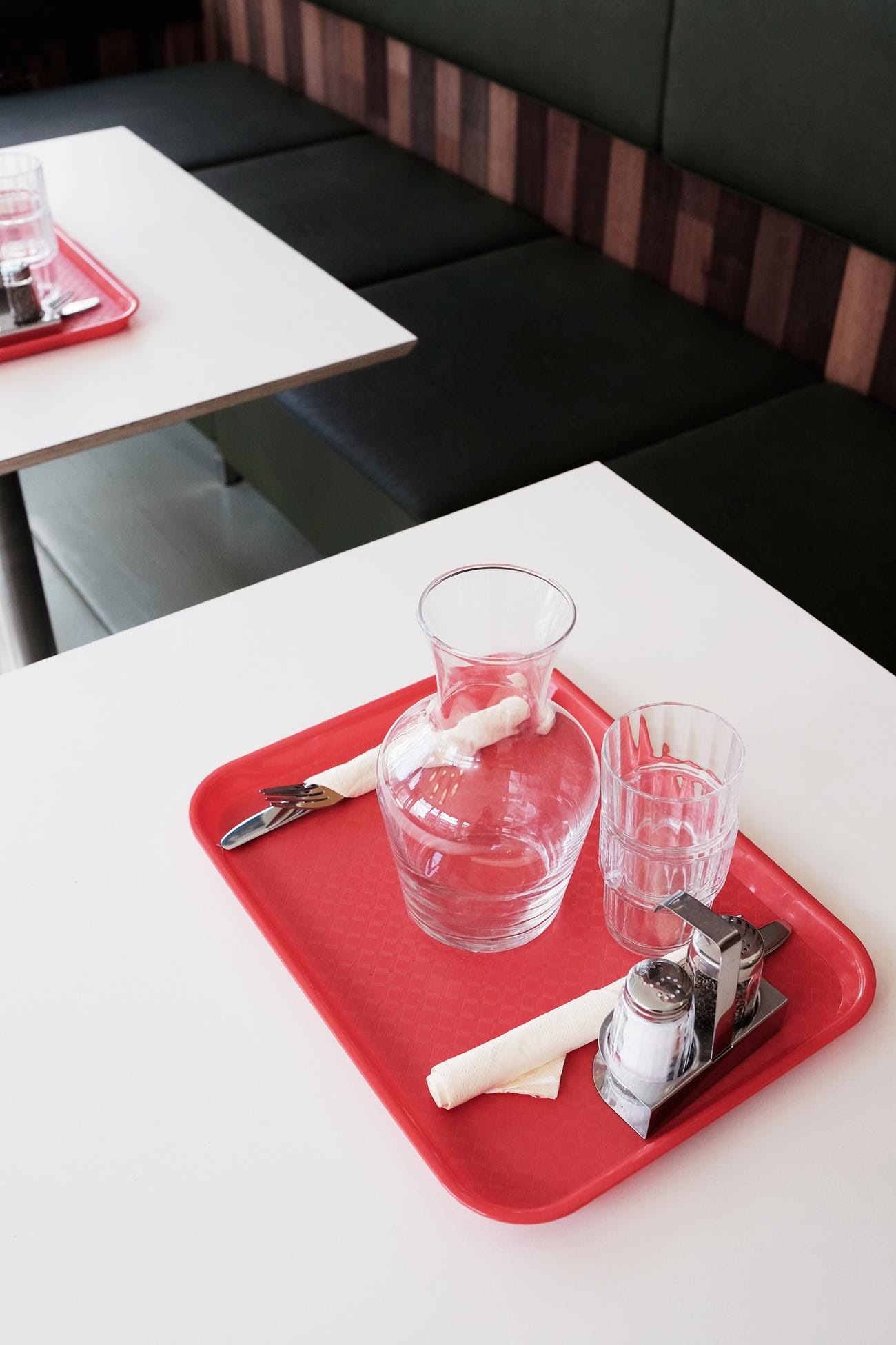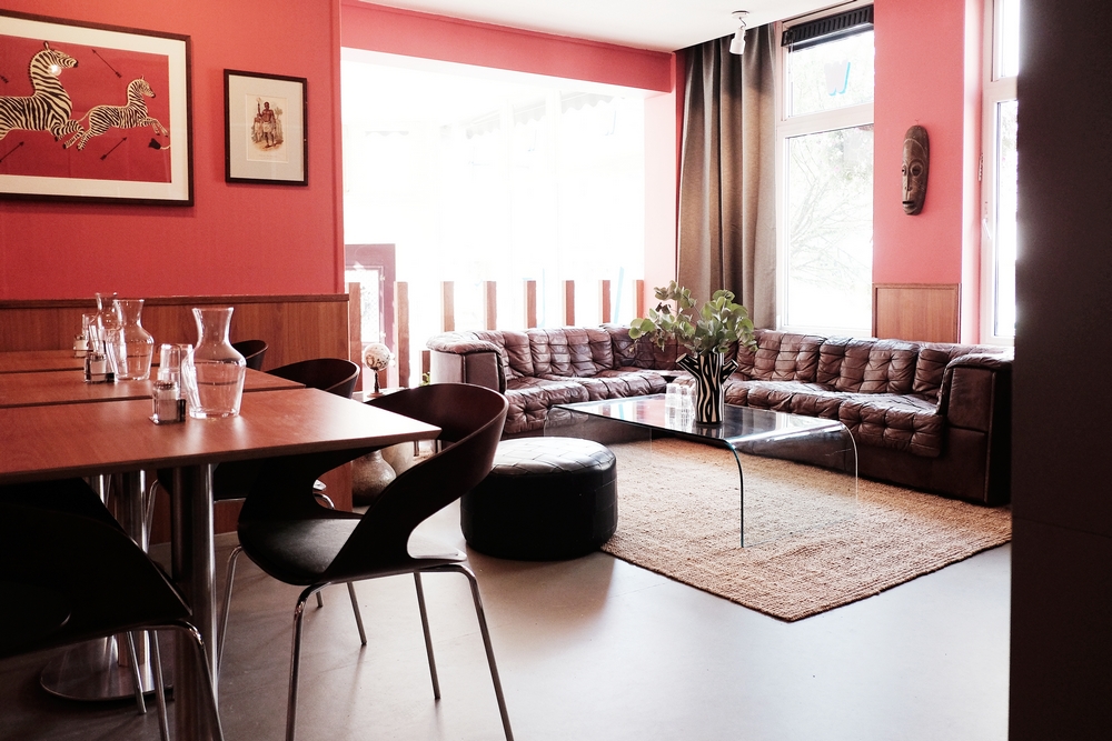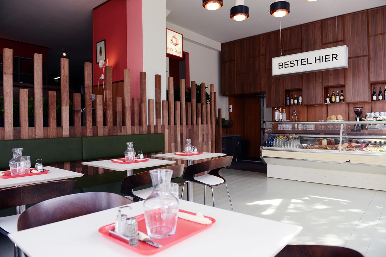 Een groot deel van de gerechten kun je ook afhalen, maar dan mis je natuurlijk wel het interieur van de zaak. De laatste ruimte van de zaak is zelfs geïnspireerd op de treinwagons uit The Darjeeling Limited, een film van Wes Anderson. Met donker hout en primaire kleuren is het écht alsof je zo een film in stapt. En een goeie ook nog.