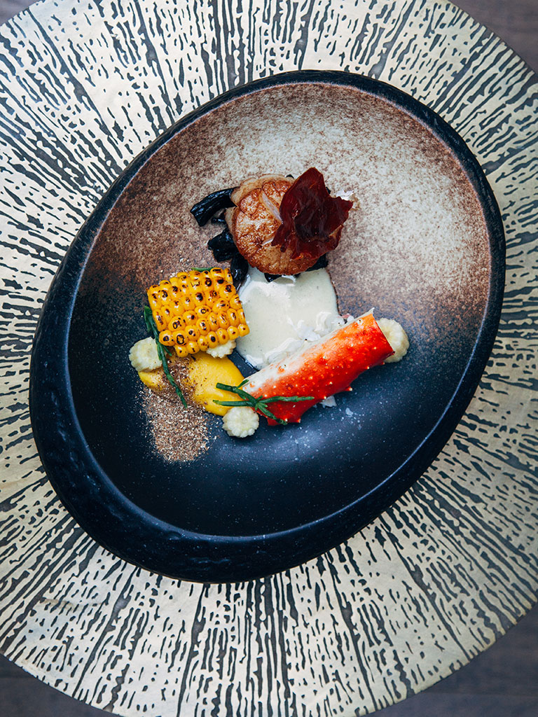 Voor het diner schuif je aan voor een tastingmenu van drie tot zes gangen. Verrassende en eigenzinnige gerechten sieren de kaart. Gekonfijte eendenbout met jam en zandkoekjes, coquilles met koningskrab en beurre noisette en beef wellington met gerookte aardappelpuree en beenmergsaus.