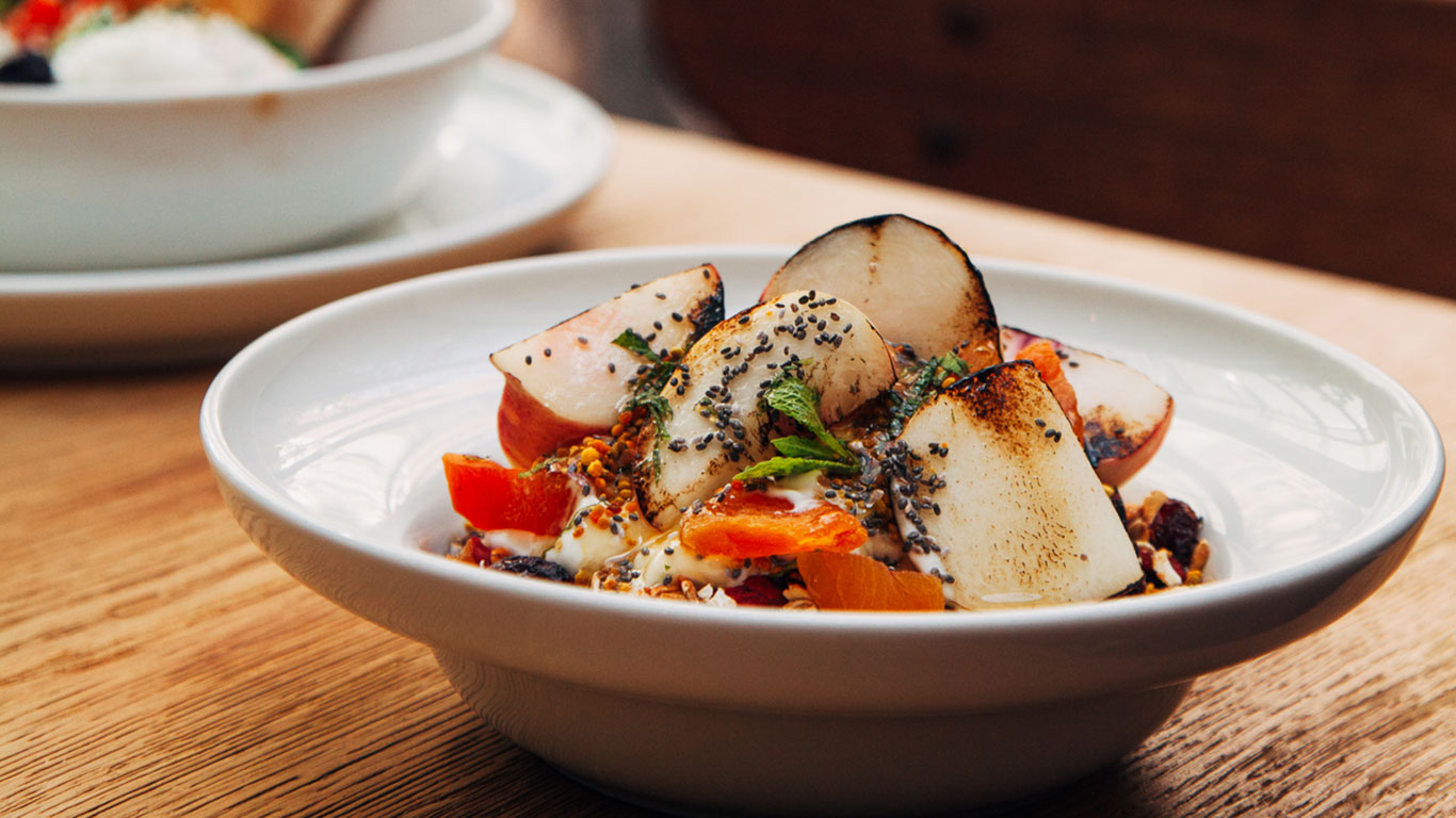 Aanschuiven voor een brekkie op niveau? Verwacht bijvoorbeeld een bijzondere shakshuka in een Noord-Afrikaans jasje, Norwegian Eggs met huisgemaakte gravlax en yuzu mayonaise of een oat porridge creme brulee met earl grey rozijnen en in kaneel geroosterde appel.