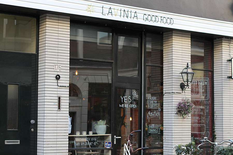 De gerechten van de dag staan uitgestald in de vitrine en aan de muur vind je planken met homemade delicatessen en andere lekkernijen. De gerechten in Ottolenghi-stijl, die licht, fris, vegetarisch en smaakvol zijn, kun je hier ter plekke opeten of meenemen. Lavinia werkt met dagverse producten en veel raw foods. En ook niet geheel onbelangrijk: er is veel keus aan zoet gebak, van een ouderwetse appeltaart tot aan raw energy candy, gemaakt met kokosrasp, noten en dadels.