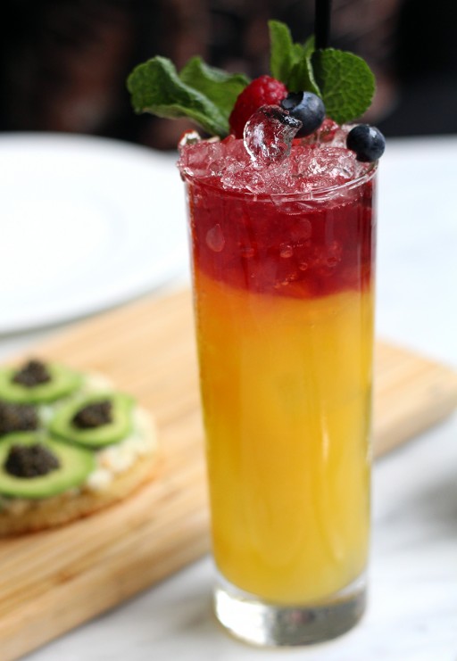 Even een (non)alcoholische versnapering tussendoor, want geheel tegen Franse bistro-regels in, heeft deze zaak een uitgebreide cocktailkaart. Deze mocktail is gemaakt met ananas, passievrucht en frambozen.