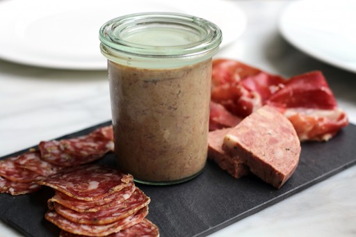 Een charcuterieplankje met hulp van Brandt & Levie: venkelworst, eendenrilette, paté en gedroogde ham.