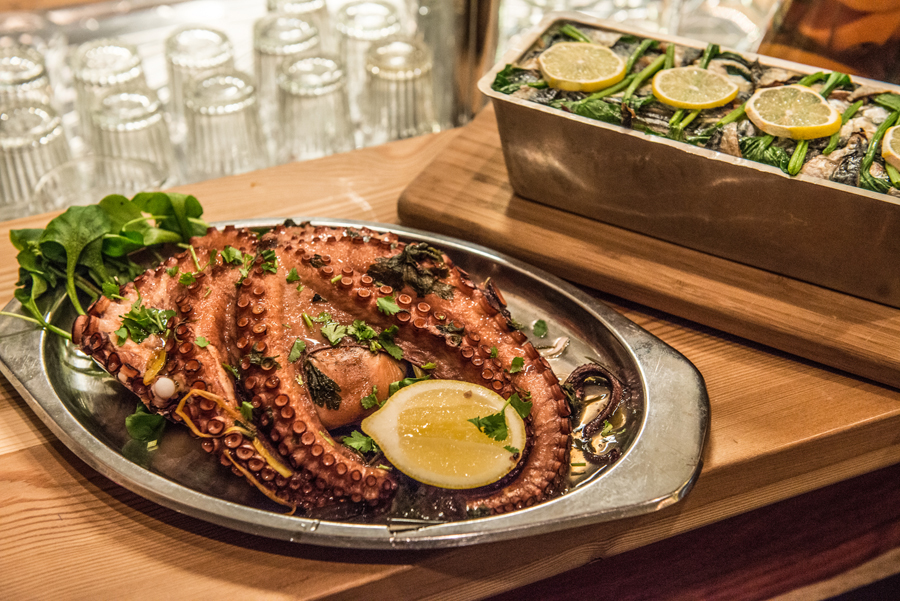 Zo zijn er ook gefrituurde inktvisjes, pulpo met citroen en peper, langzaam gegaarde kalfstong met pruimen en piepkuiken met ingemaakte citroen. Als daar het water niet van in je mond loopt, dan weten wij het ook niet meer!