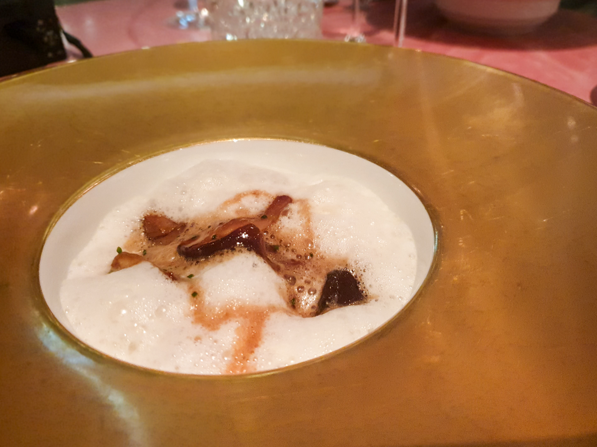 Als we zijn geïnstalleerd op onze plek komt de sommelier ons verrassen met een hele fijne champagne. Daar zeggen we natuurlijk geen nee tegen.