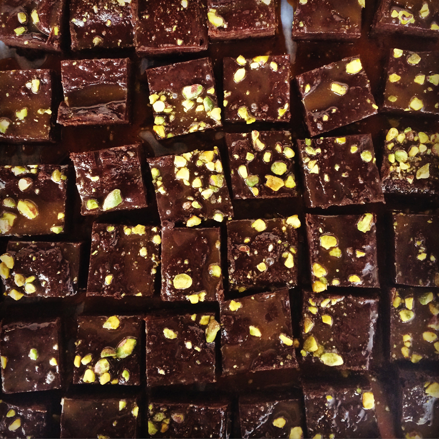De hele taarten zijn alleen op bestelling verkrijgbaar, de brownies, blondies, snickers en kruidkoek gaan per plaat. Daarnaast zijn er ook kleinere hapjes en taartjes die je zo uit de vitrine kunt uitkiezen.