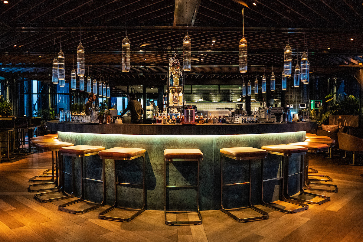 Ben je klaar met eten, dan kun je nog even de lift pakken naar de 21e (yep, really) verdieping voor Juniper & Kin. Een hele toffe cocktailbar met een puik uitzicht over Amsterdam-Oost.
